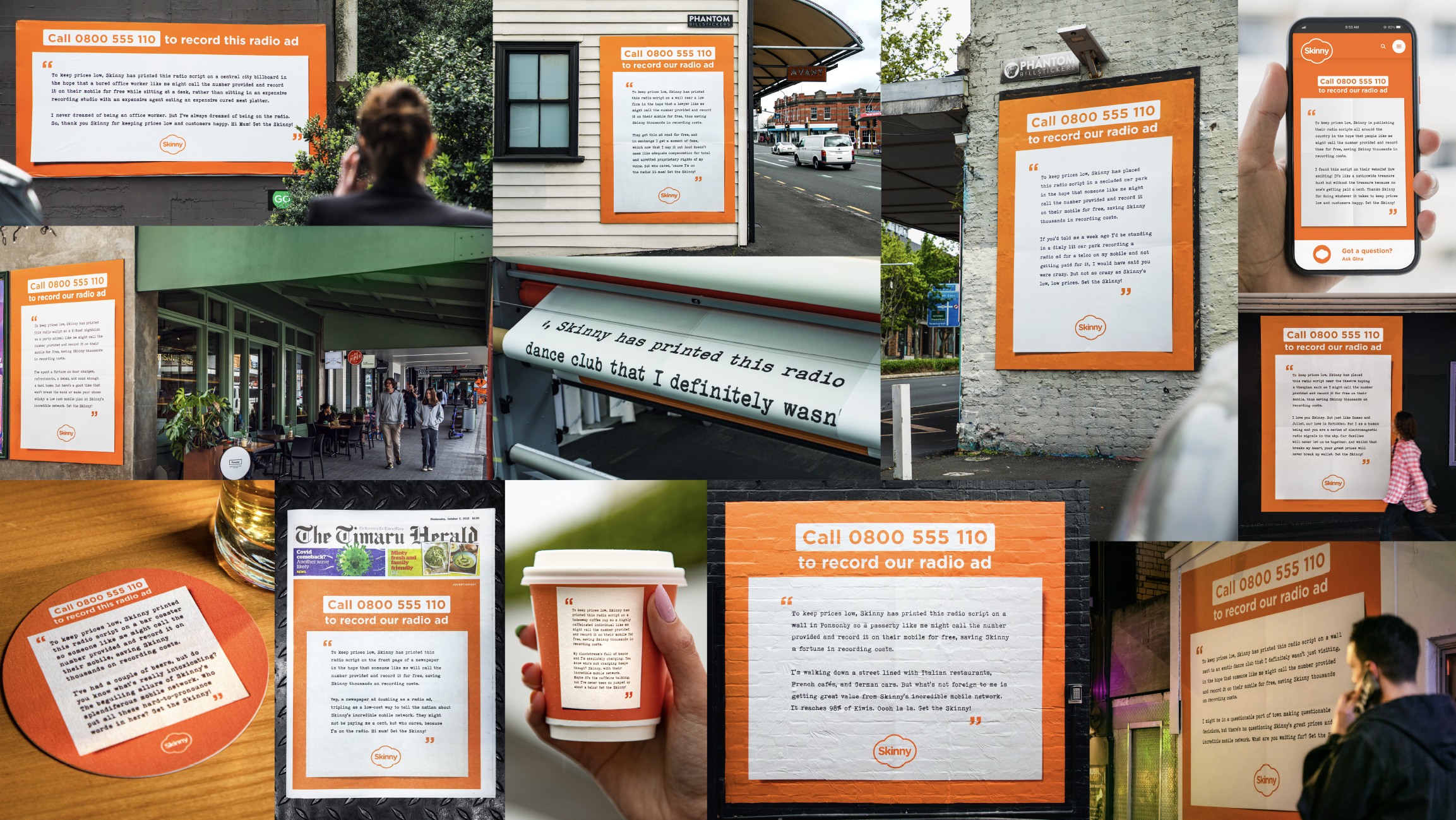 Skinny Mobile is always looking for ways to save money and pass those savings onto customers. Instead of paying celebrities to feature in its ads, Skinny open sourced 34 bespoke radio scripts as OOH placements so anyone could record them on their mobile – for free. Each script was contextually relevant to its location, and included a phone number that took callers to an answering machine. From there, the recordings were dispatched as radio ads. The result was an OOH campaign that doubled as a radio campaign and tripled as Skinny’s most effective recruitment campaign ever.